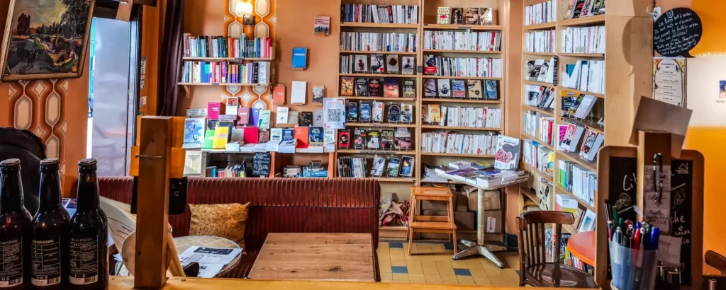 Au Biblio Café, profitez d’une librairie atypique pas comme les autres : découvrez des livres neufs et d’occasion en vente directement sur place. Il est possible de s’installer avec le titre qui aura retenu votre attention et de le consulter lors de votre passage, avec délicatesse ! Vous avez repéré un ouvrage qui manque à nos étagères ? Commandez-le facilement au comptoir. Nous sommes aussi un point de vente et de lecture du journal L’Âge de Faire et collaborons avec Bulles d’Encre pour approvisionner notre sélection. Un lieu de partage où chaque livre raconte une histoire et soutient des valeurs.